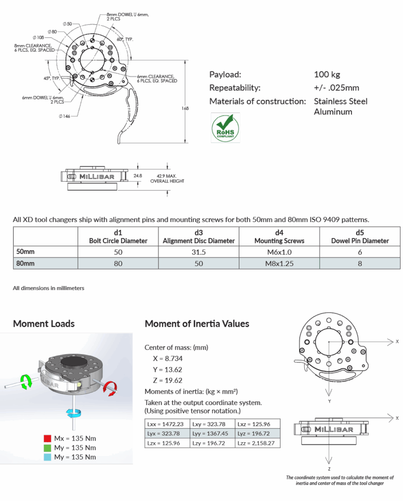 Everything you love about the original Millibar Manual Tool Changer, now scaled for heavier payloads!